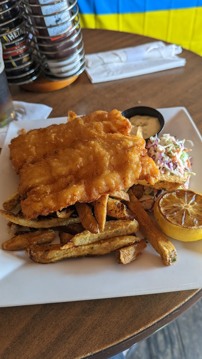 Great place. It's not often you fund yourself on little Italy and wind up at British pub. That said, the fish n chips were ok overall. The fish was over the top awesome. With the right amount of batter and a perfect cook. The chips were fine. I didn't order for the chips so no sweat for me, but ymmv.